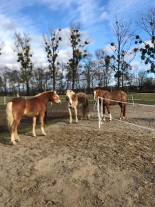 Nach vier Wochen Geduldsprobe mit Absperrbändern und provisorischen Zäunen auf dem Paddock kann ich nun endlich sagen: Mission completed! Ich habe mich getraut, die Bänder zu entfernen und die Herde zueinander zu lassen. Und es scheint wirklich friedlich zu bleiben!