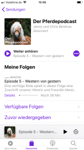 Über ein modernes Smartphone lassen sich Podcasts besonders bequem hören, aber es funktioniert auch über Tablets, Laptops oder einen Desktop-Rechner. Nötig ist nur eine Verbindung ins Internet. Auf iPhones oder iPads ist die Podcast-App schon standardmäßig installiert. Du musst einfach nur nach dem Pferdepodcast suchen und kannst sofort anfangen, die Folgen abzuspielen.