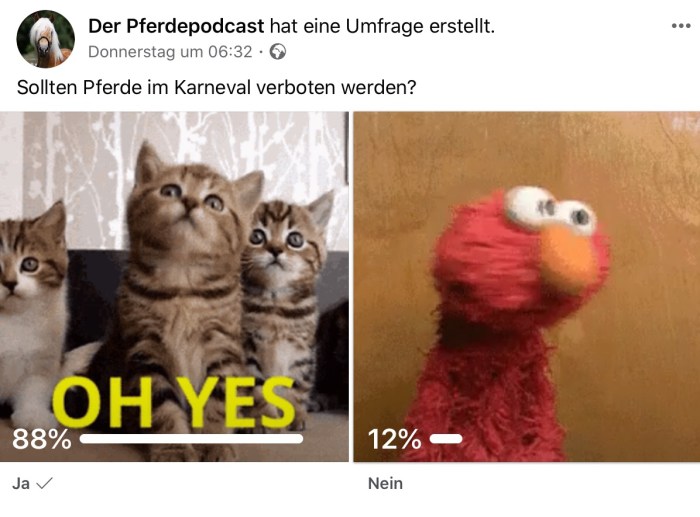 Genau eine Woche vor Rosenmontag geht es in Episode 54 des Pferdepodcasts („Code Water“) unter anderem um die Rolle von Pferden im Karneval. Sollen sie es – wie es vielerorts Tradition ist – in den Umzügen mitlaufen oder ist das nicht mehr zeitgemäß und sollte verboten werden? Das Ergebnis unseres Facebook-Votings ist eindeutig: