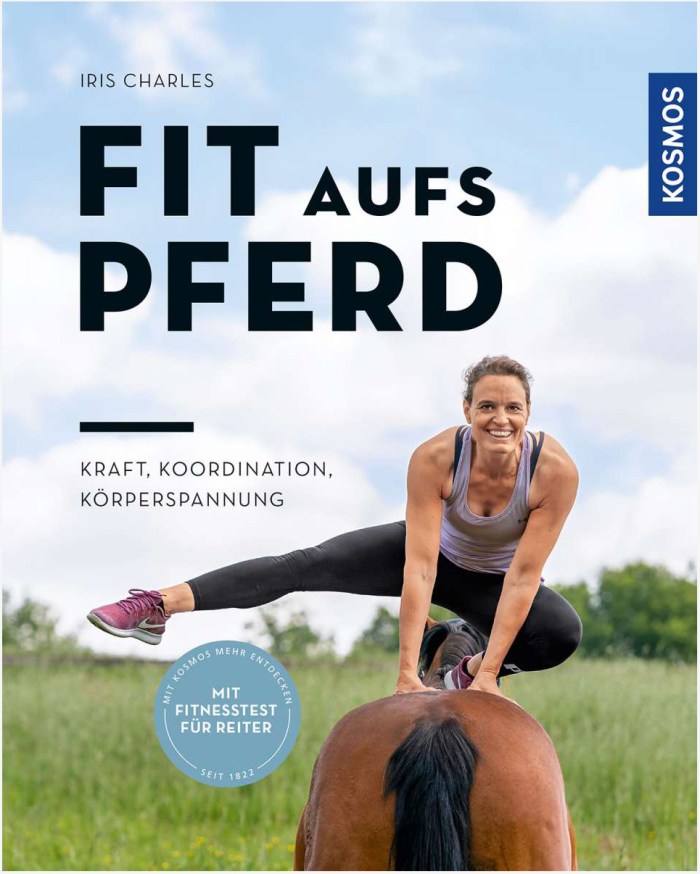 Diese und ähnliche Fragen beantwortet Sportpädagogin und Reitlehrerin Iris Charles im Interview, das bei Minute 25:27 beginnt. Iris Charles reitet selbst erfolgreich in Dressurprüfungen der Kategorie S*** und ist Autorin des Buches „Fit aufs Pferd“, das im Kosmos-Verlag erschienen ist.