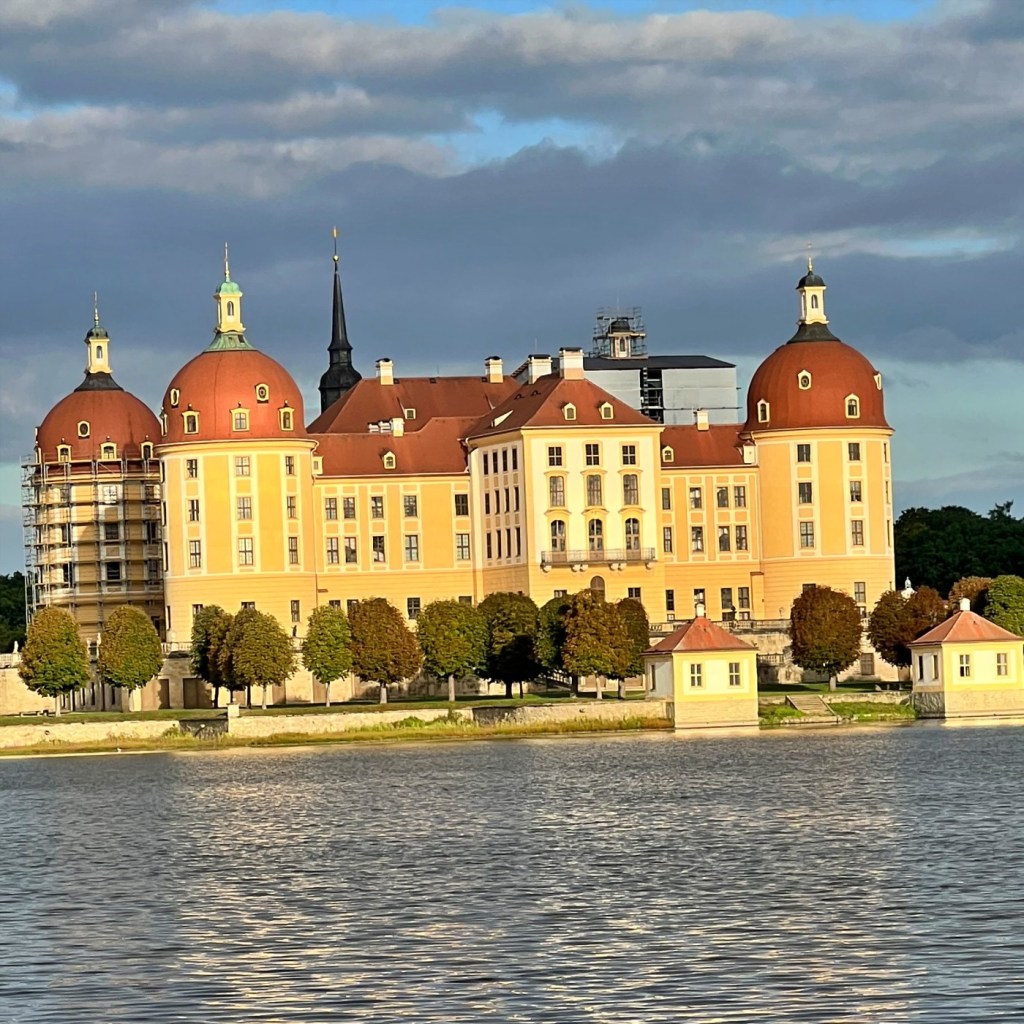 [4:37] Wir waren in Moritzburg. So herzallerliebst, dieses Schloss. Tief im Osten Deutschlands. Das ist ja da, wo das Aschenbrödel bohrt. Drei Nüsse für Aschenbrödel, da wurde das gedreht. In diesem Schloss Moritzburg. Der Film, den wir alle aus dem Weihnachtsfernsehprogramm kennen, wurde in Moritzburg. Und man fährt diese Straße darunter. Also man kommt da so rein in dieses Moritzburg. Es ist total pupsig. Es ist mini klein. Man denkt so, Moritzburg ist ein ganz kleines Örtchen. und die Hauptattraktion ist das Landgestüt und das Schloss. Und man fährt da runter mit dem Blick auf das Schloss. Es ist wirklich wie in so einem Märchen. Also genau so sieht es aus. Also für uns natürlich in dieser Reihenfolge das Landgestüt und das Schloss. Andere würden sagen das Schloss und das Landgestüt, aber okay. Absolut. Also es ist herzallerliebstes ein Bild von einem Schloss. Wir haben dann ja auch mal gegoogelt und man lernt dann so viel unnützes Wissen auch so. Ja, absolut. Also ich habe mir gemerkt, in diesem Märchen spielt ja der Schuh eine große Rolle. Welche Schuhgröße hatte der Schuh? 38. Passt wahrscheinlich 80 Prozent aller Frauen. Außer mir. Mir natürlich nicht. Dann stehen da auch Pferdekutschen vor dem Schloss Moritzburg. Wie viel kostet eine Kutschfahrt? 90 bis 100 Euro, glaube ich, bis zu acht Personen oder so. Ja, glaube ich.