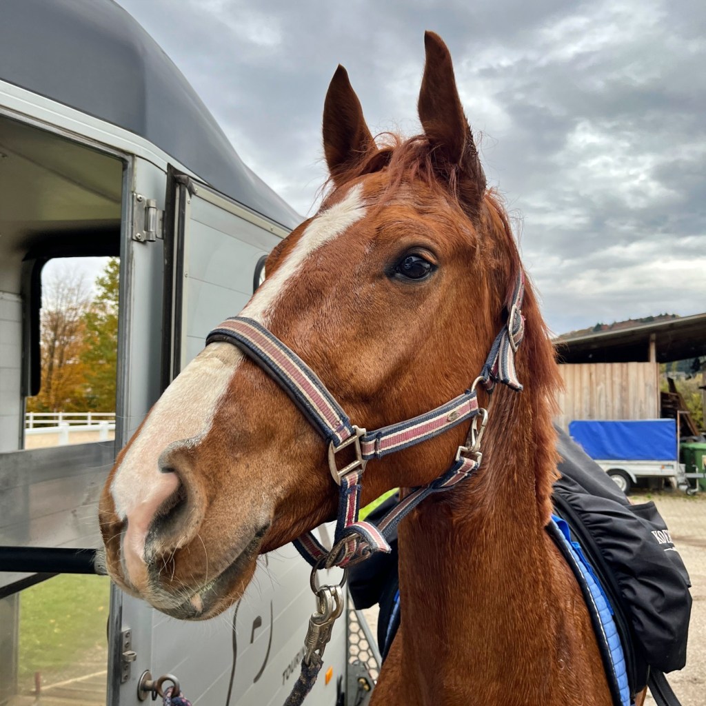 [24:24] Und ich habe ihm ein bisschen Zeit gelassen, er durfte sich dann wälzen auf dem Platz, also an der Longe habe ich ihn einmal sich hinlegen lassen. Hat er auch gemacht. Hat er gemacht, hat ein bisschen gedauert, hat er aber gemacht und dann ein bisschen in den Hänge und dann ein bisschen Futter angeboten. Das hat ihn so ein bisschen runtergebracht, obwohl er nicht, also er konnte nicht fressen. Es war, er hat immer mal ein bisschen genommen und hat dann wieder geklotzt. Und dann wieder ein bisschen genommen und dann wieder, oh, da war auch ein Geräusch. Und dann wieder so. Er wusste gar nicht, wo er zuerst hingucken soll. Und er weiß dann gar nicht, wo kommen denn diese ganzen Geräusche her, wo soll ich denn zuerst hingucken. Aber dadurch, dass er so eine Zeit lang im Hänger stand, ohne dass irgendwas passiert ist und ohne dass irgendjemand irgendwas von ihm wollte und er einfach nur ein bisschen Futter mümmeln konnte, hat er sich relativ schnell beruhigt. Und ich habe dann auch irgendwann gesagt, okay, Futter, die halbe Portion mochte er nicht mehr, weil er so beschäftigt war mit Klotzen. Dann habe ich gesagt, okay, jetzt fahre ich. Und er war total brav. Also er hat nicht gebollert.