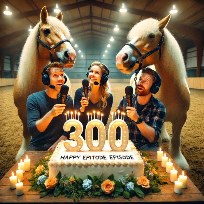 „Da willst du ein Feuerwerk zum Jubiläum zünden – und am Ende bist du froh, dass du eine Wunderkerze angezündet bekommst.“ Mit diesem humorvollen Kommentar eröffnet Chris die 300. Folge des Pferdepodcasts („Wir beachten nicht meine Haare“). Ob das nur Understatement ist oder doch die Wahrheit, entscheiden am besten die Zuhörer. Fest steht: In unserer … Weiterlesen Eine Wunderkerze zum Jubiläum: Cherilyn gewinnt Sturztraining, Klex wird Westernpferd und die „Kein-Hirn“-Shirts sind da